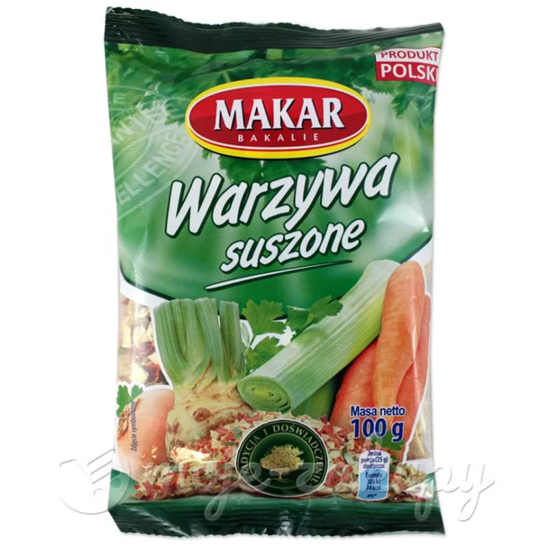 Składniki: Marchew 45%, pasternak 45%, por 4%, cebula 2%, pietruszka 2%, seler 2%.