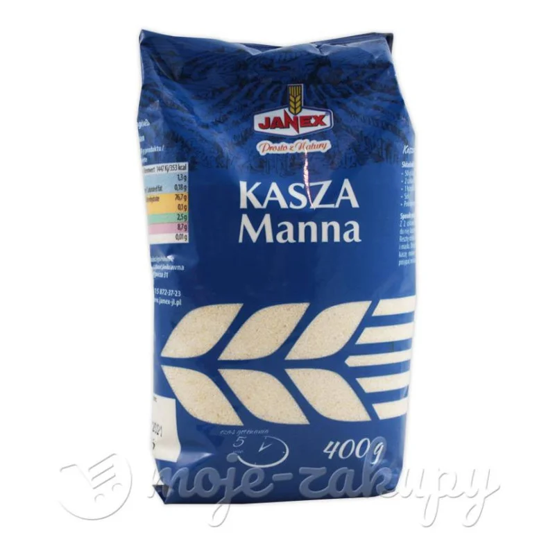 Sposób przygotowania: do gotującej się wody wsypać kaszę mannę i gotować na wolnym ogniu 5 minut.